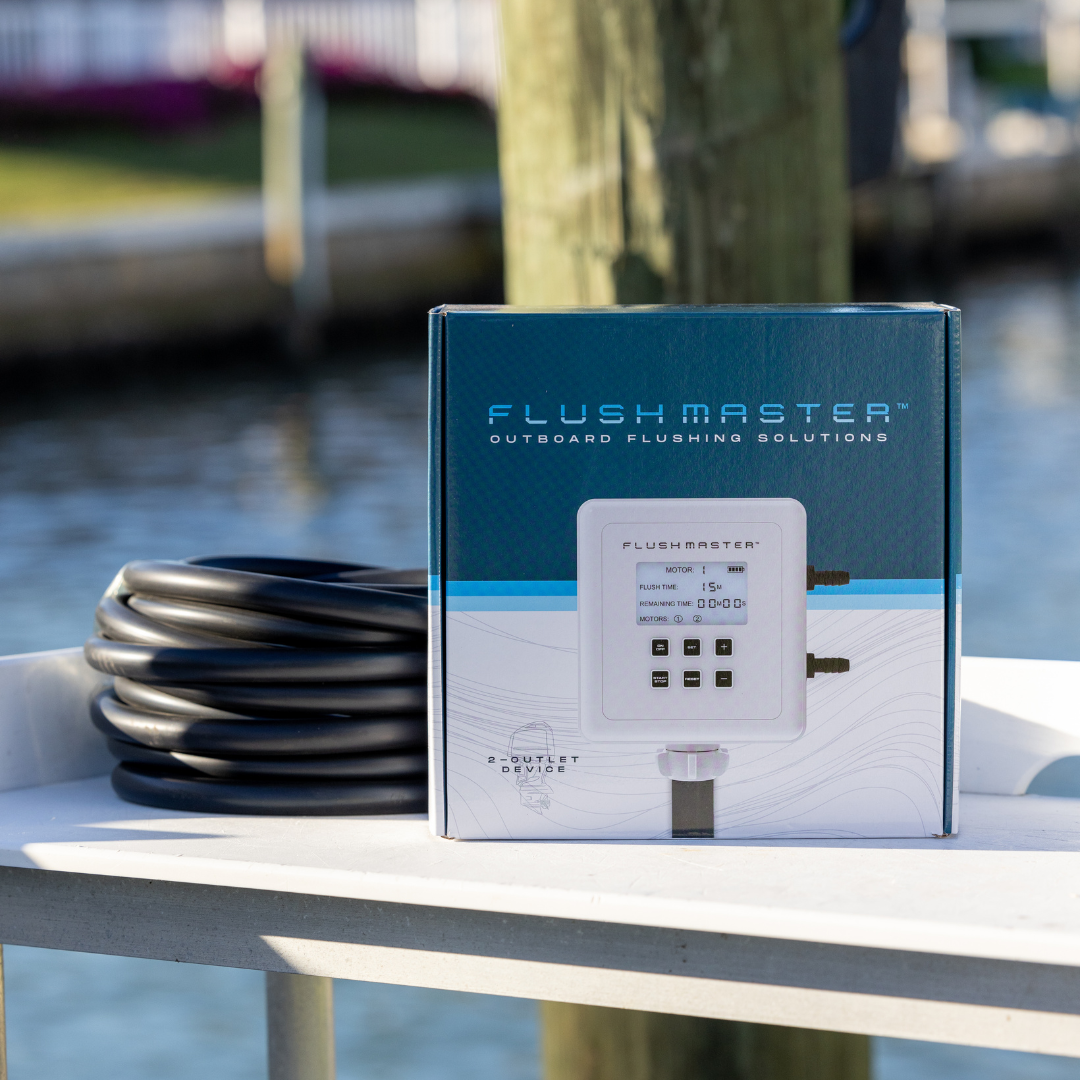 Flushmaster makes outboard maintenance easier than ever. Fully portable and powered by AA batteries, it connects to any water source and automates flushing with just the push of a button. No more dragging hoses or standing around — our Flush Port Quick Connects and accessories let you use it anywhere, saving you time, effort, and water. Flushmaster is the ultimate convenience in outboard flushing.