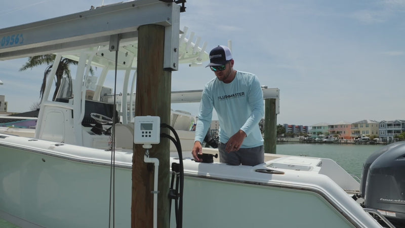 A portable, battery-powered interface that automates the chore. Pre-programmed for 15-minute cycles, the Controller uses sequential logic to deliver 100% water pressure to every port—zero boat wiring required.